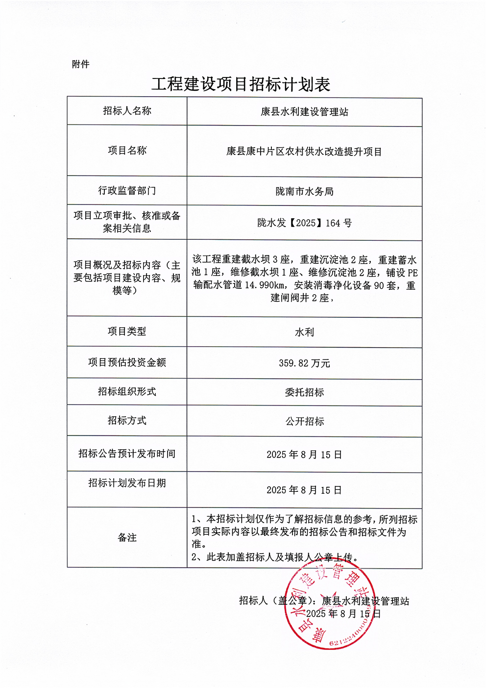 康縣康中片區(qū)農村供水改造提升項目