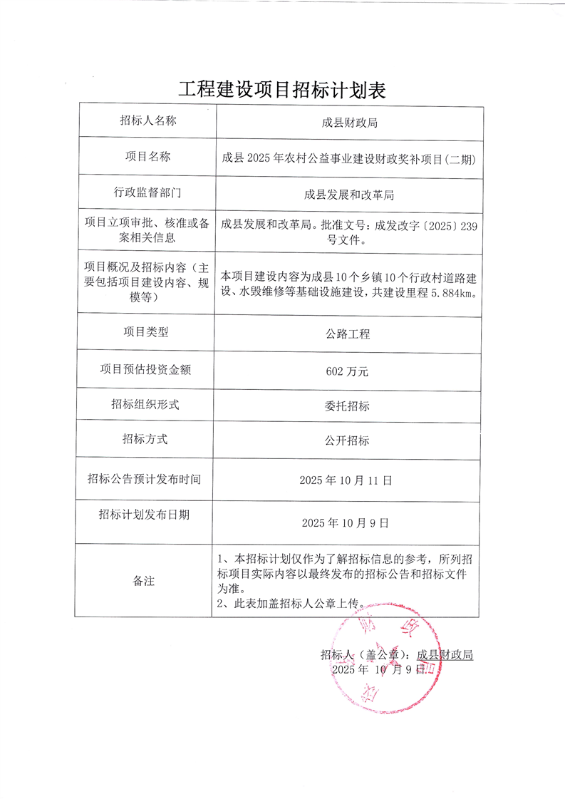 成縣2025年農(nóng)村公益事業(yè)建設(shè)財(cái)政獎(jiǎng)補(bǔ)項(xiàng)目(二期)