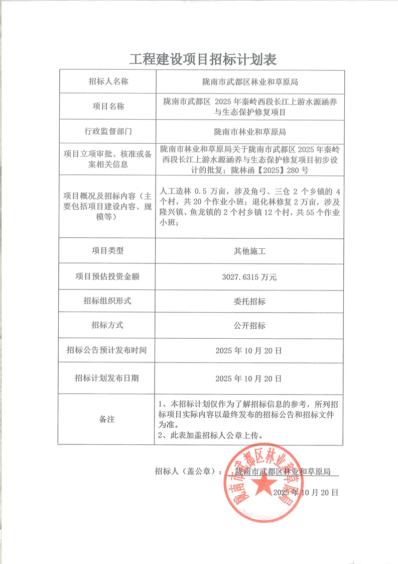 隴南市武都區(qū)2025年秦嶺西段長江上游水源涵養(yǎng)與生態(tài)保護修復項目