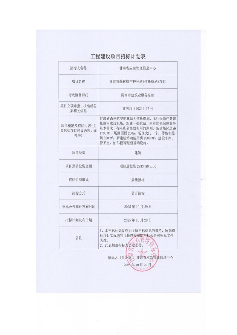 甘肅省森林航空護林站(依托航站)項目