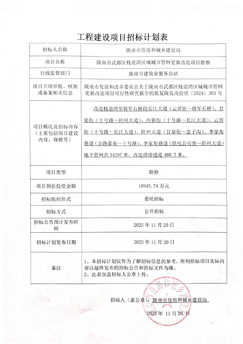隴南市武都區(qū)棧道灣區(qū)域城市管網(wǎng)更新改造項目勘察