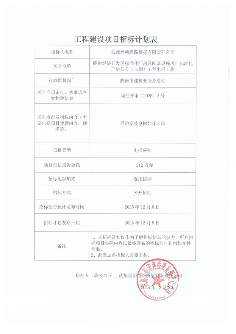 隴南經(jīng)濟開發(fā)區(qū)標準化廠房及配套設(shè)施項目標準化廠房部分(二期)工程電梯工程