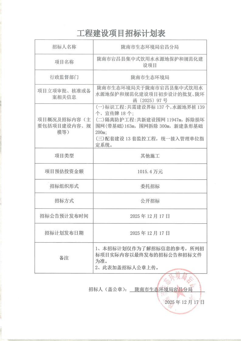 隴南市宕昌縣集中式飲用水水源地保護和規(guī)范化建設項目