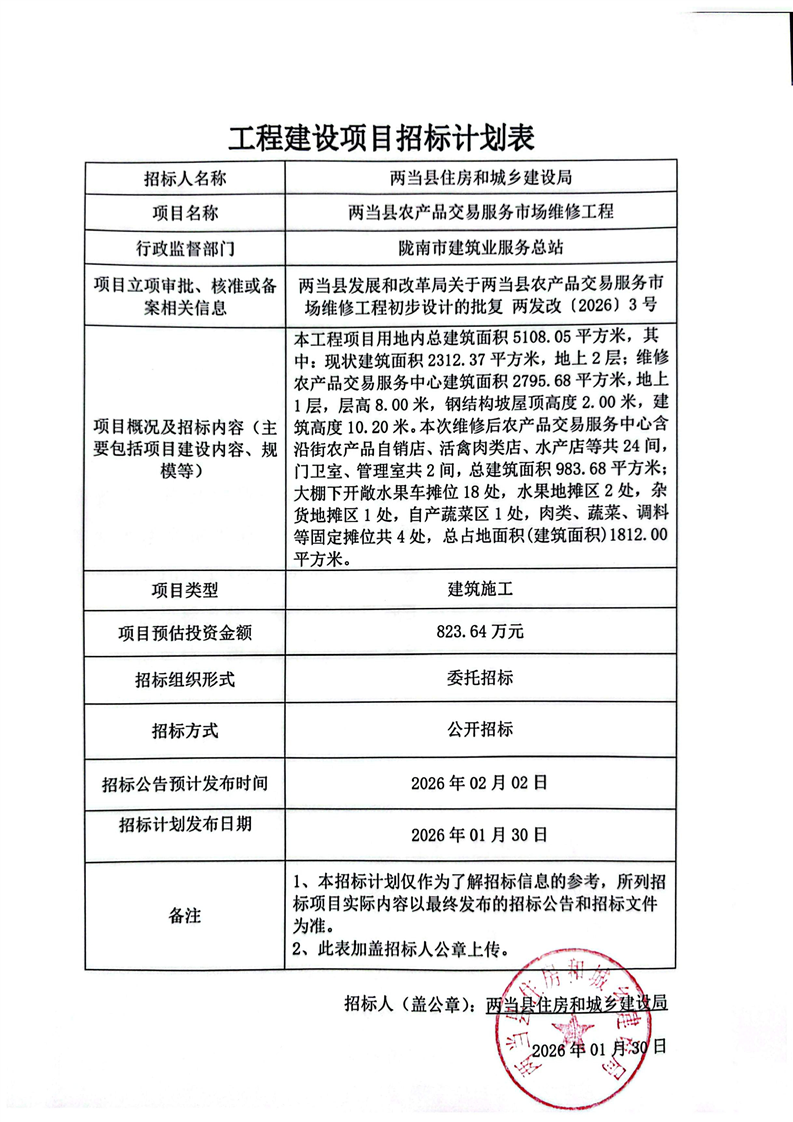 兩當(dāng)縣農(nóng)產(chǎn)品交易服務(wù)市場維修工程