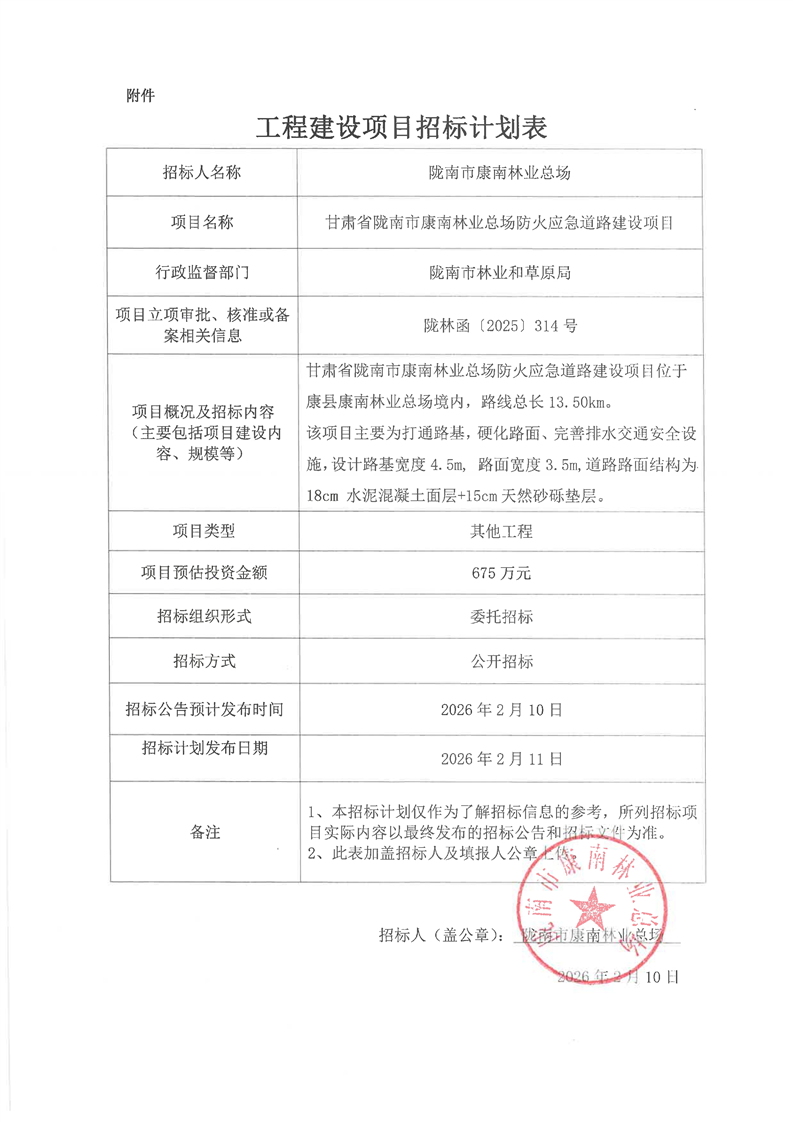 甘肅省隴南市康南林業(yè)總場(chǎng)防火應(yīng)急道路建設(shè)項(xiàng)目