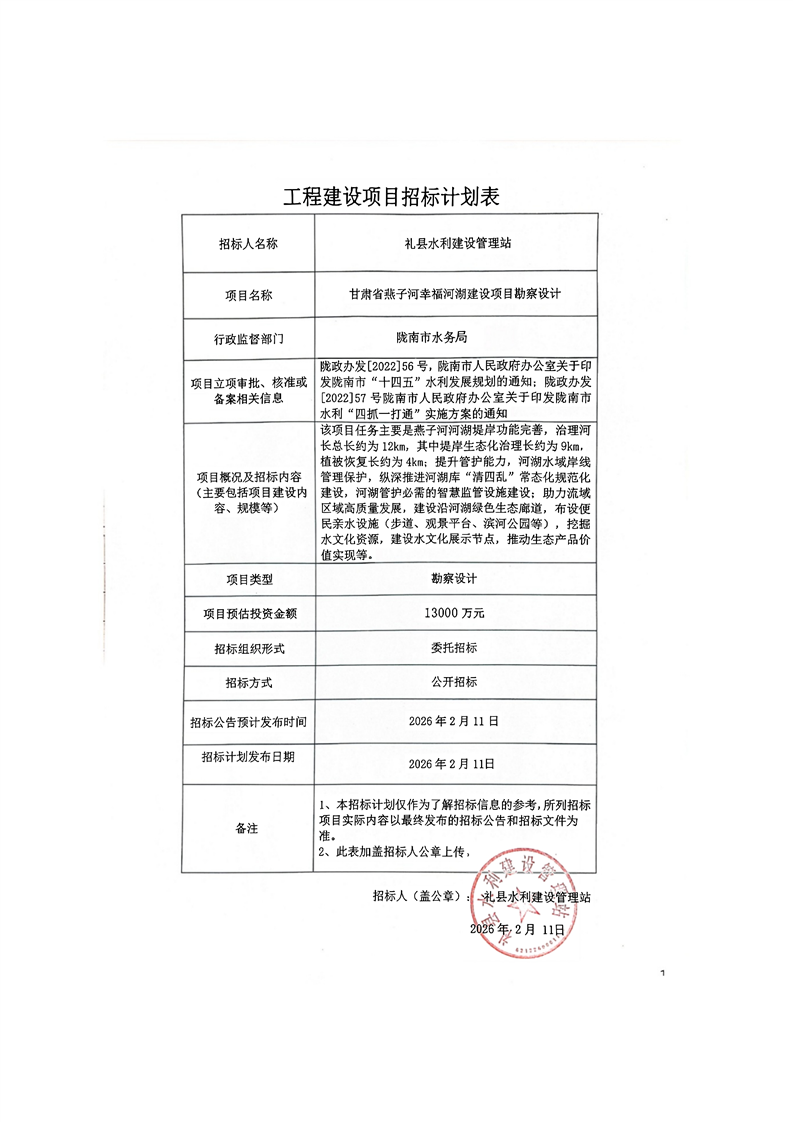 甘肅省燕子河幸福河湖建設(shè)項(xiàng)目勘察設(shè)計(jì)
