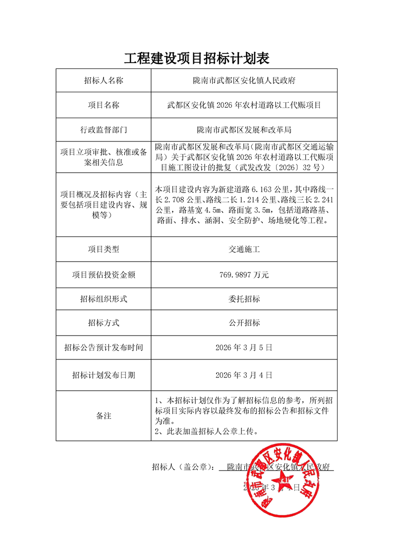 施工招標計劃表—武都區(qū)安化鎮(zhèn)2026年農(nóng)村道路以工代賑項目22.pdf