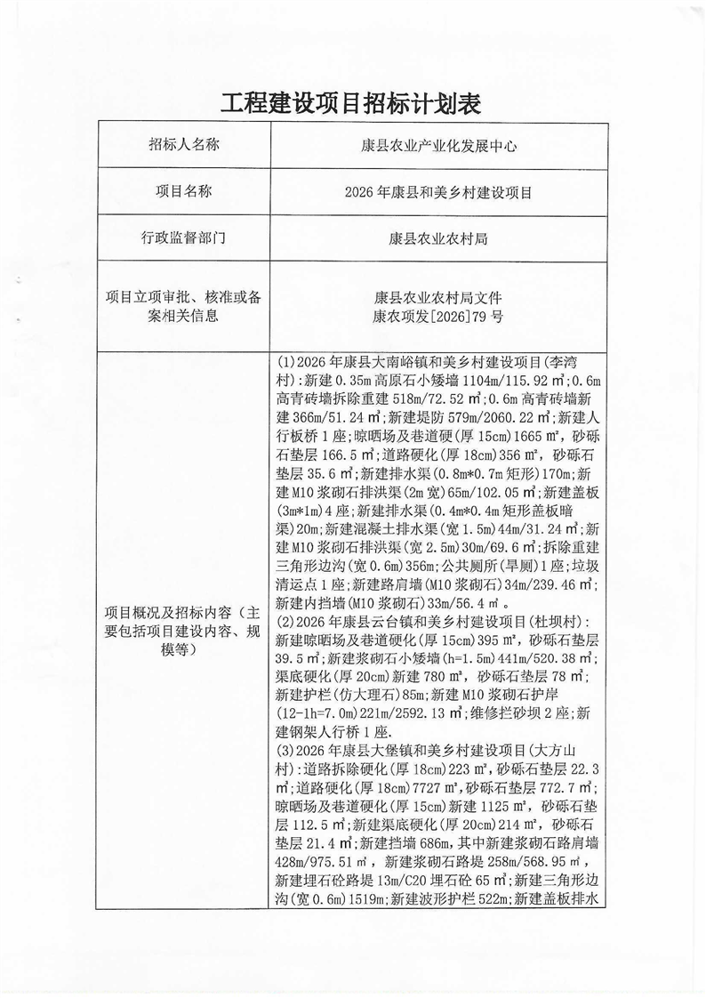2026年康縣和美鄉(xiāng)村建設(shè)項(xiàng)目