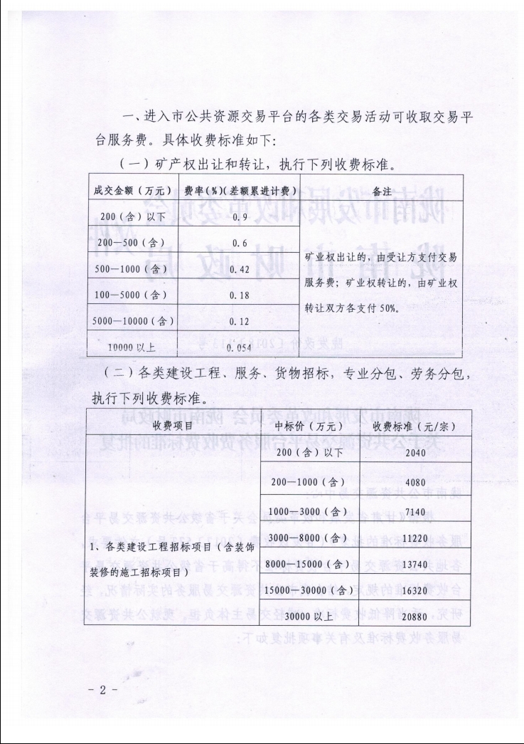 隴南市發(fā)展和改革委員會(huì) 隴南市財(cái)政局關(guān)于公共資源交易平臺(tái)服務(wù)費(fèi)收費(fèi)標(biāo)準(zhǔn)的批復(fù)